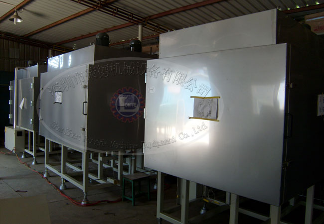 紫外光固化設(shè)備由光源、反射板、燈具、電源裝置、冷卻裝置、傳感器、工件輸送裝置、排氣換氣裝置、室體壁板及防紫外線照射擋簾等組成。中型工件的紫外光UV固化室一般為非標(biāo)設(shè)備,根據(jù)產(chǎn)量、工藝要求、工件外形大小、輸送方式及速度等具體情況設(shè)計(jì)制造,小型工件的紫外光固化設(shè)備市場(chǎng)上有部分規(guī)格產(chǎn)品可供選購(gòu)。