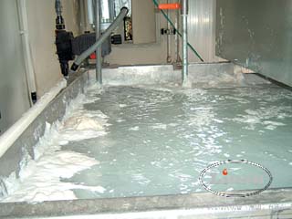 根據(jù)噴涂生產(chǎn)線的布置和產(chǎn)品的上漆量計(jì)算,每天進(jìn)入廢水的漆渣和產(chǎn)品的油漆量比例約為7:3,設(shè)漆渣的含水率約50%,按照產(chǎn)品的產(chǎn)量計(jì)算最終得出每天的漆渣約500kg,渣槽6.25m3,漆渣槽約10天清理一次漆渣。生產(chǎn)線上的定期清理免除。
